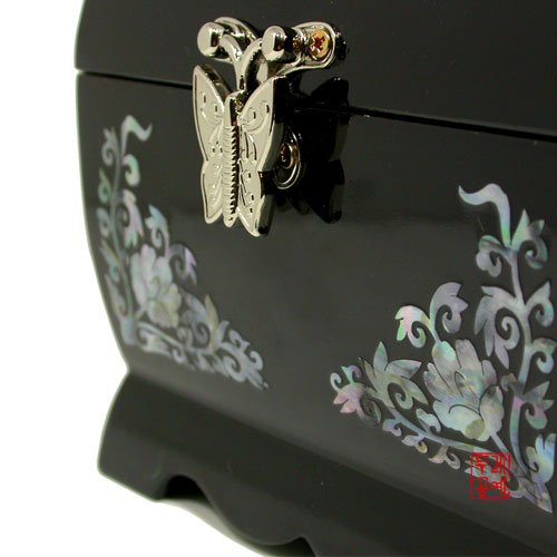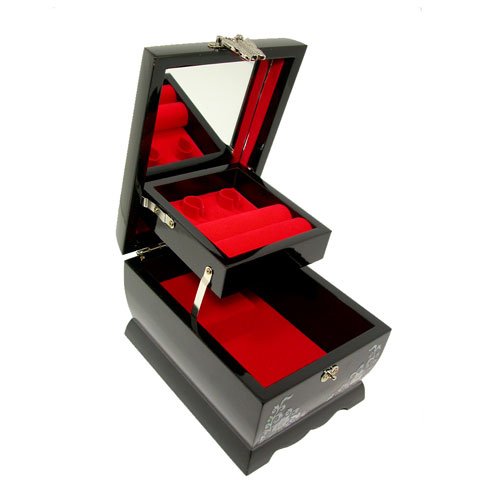 - Title : Mother of Pearl Asian Lacquer Wooden Black Bird Music Jewelry Case Trinket Keepsake Treasure Gift Box Organizer with Crane Design