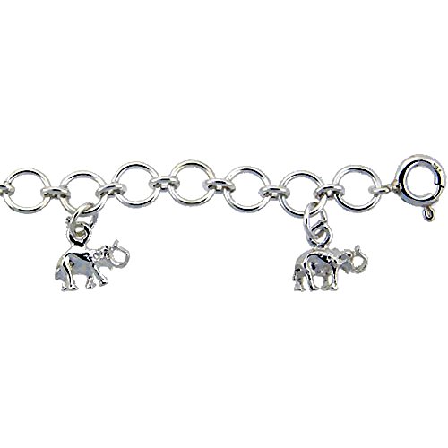 -. Title : Sterling Silver Elephants Anklet, fits 9 - 10 inch ankles