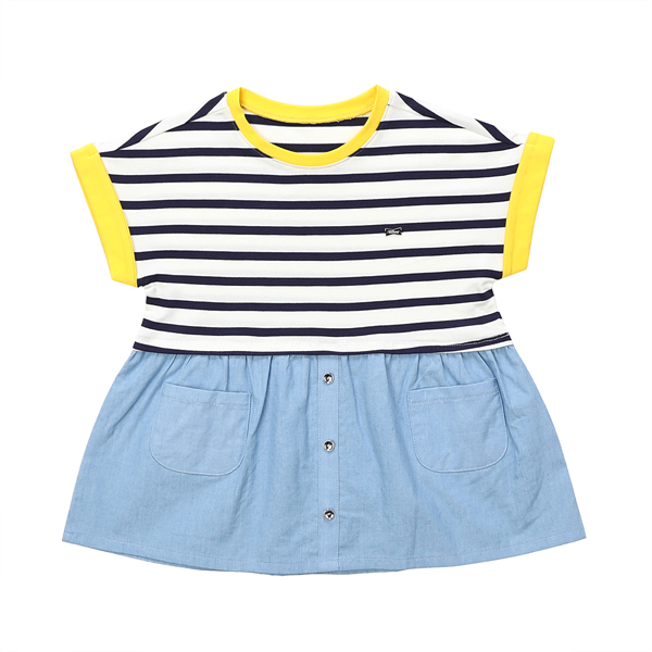 목선과 소매끝단에 엘로우컬러로 배색을 하여 산뜻한 느낌이 돋보이느 티셔츠입니다.