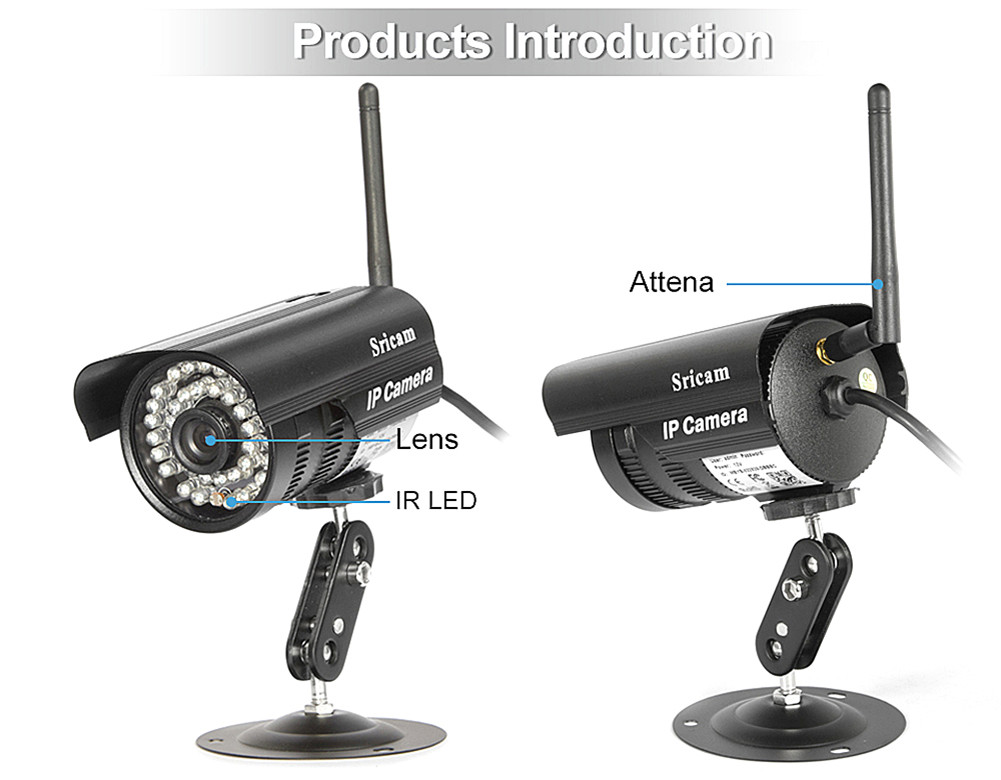 1 x 720P Wireless IP Camera, 1 x Bracket, 1 x Power Adapter, 1 x English User Manual, 1 x Mounting Screw ( Set ), 1 x Spanner
