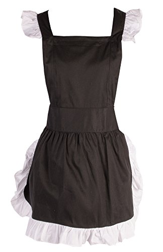 APRN-058-Retro Vintage Ruffle Apron Kitchen Cooking Baking Cleaning Maid Costume in Black