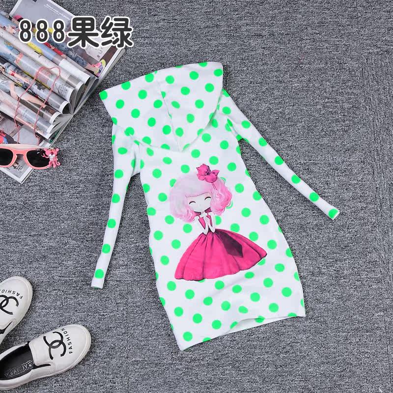 甜美款连帽T裙,休闲好搭配,夏季实用款。棉质面料手感柔软弹力好,气质连帽上身有型,可爱的圆点涂鸦,后背可爱娃娃拼贴,色彩鲜艳饱满,单穿或配裤袜穿很好看哦,性价比高,推荐!
