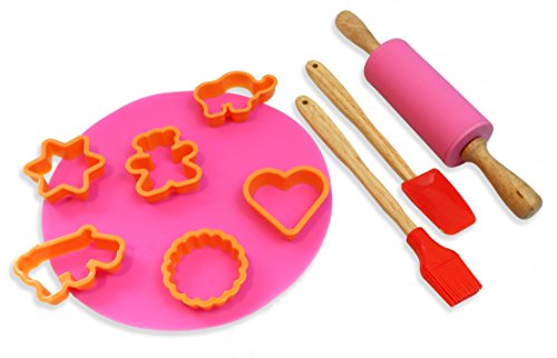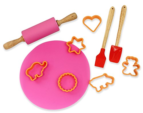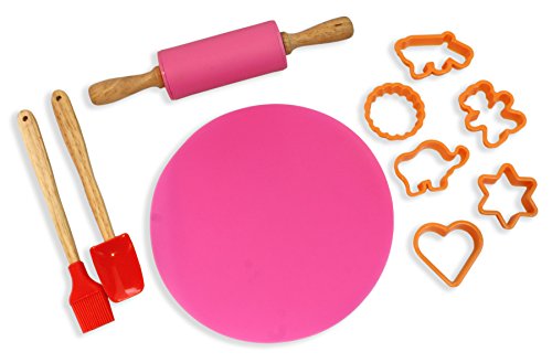 - Cookie Baking Set Includes 6 cookie cutters, rolling pin, silicone mat, spatula, and brush