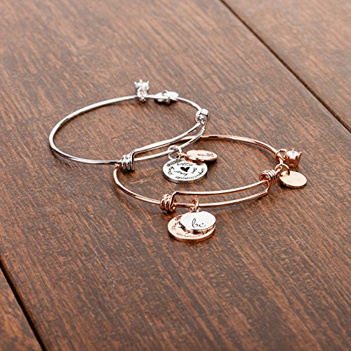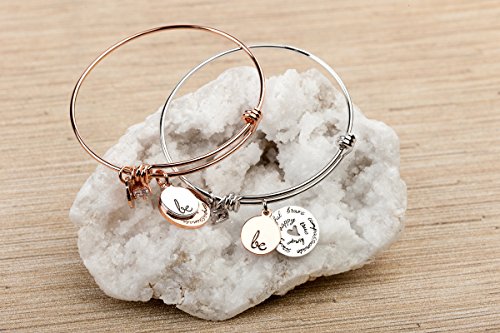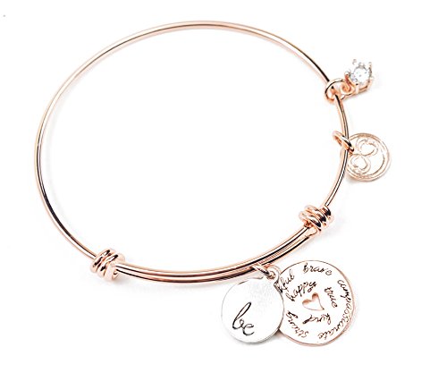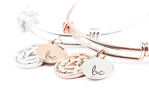 -. Feature : Wear Inspiration Wherever You Go: This chic, elegant charm bracelet is a beautiful reminder to be your best self, always. Expandable design comfortably fits older teens & adult women. / Plated in Genuine 18K Gold: Choose from 18K rose gold-plated with "Be" charm in white gold OR 18K white gold-plated with "Be" charm in rose gold. Won't rust, tarnish or discolor skin. / Ideal for People with Allergies: Got sensitive skin? Our hypoallergenic bracelet will not cause skin irritation or rash. It's a great option for people who normally can't wear costume jewelry. / An Exquisite Gift: Packaged in our signature turquoise-and-gold slide-out box with shimmery fabric pull tab, our bracelet makes a unique gift for a birthday, graduation or retirement. / 1-Year 100% Money Back Guarantee: If you or your gift recipient aren't thrilled with our charm bracelet, tell us within 12 months of purchase and get a full, no-hassle refund!