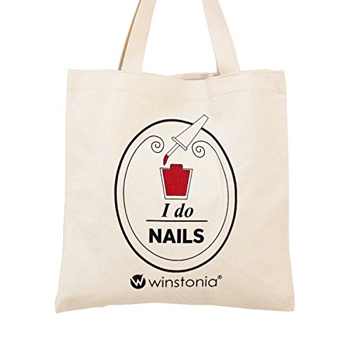 Winstonia 100% Cotton, Machine Washable Heavy Duty Canvas Reusable Shopping Tote Bag, Natural Chai Hue, 'I Do Nails'