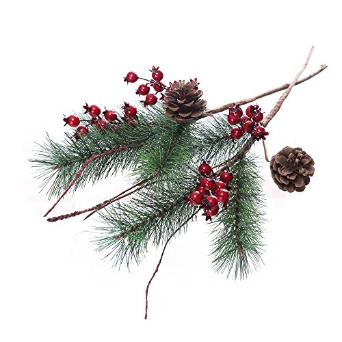 Felice Arts 17.7" Christmas Artificial Pine Berries 2pcs Foam Pinecone Berry Bacca Fake Flowers for Christmas Decoration