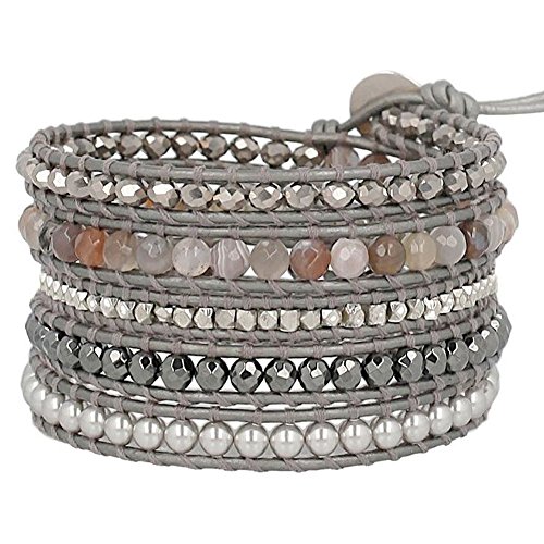 -. Title : Womens 32" Mix Sectioned Wrap Bracelet on Grey Leather