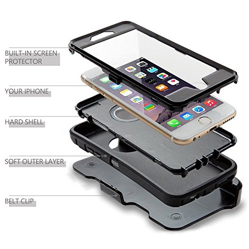 FUNCTION: Absorbent outer hard cover shell and inner transparent film gives max protection for your iPhone: DROP PROOF, SHOCKPROOF, DUSTPROOF AND ANTI-SCRATCH, especially four reinforced corner provide extremely strong protection. 360 degree rotary belt clip, belt clip can acts as a kickstand and also for a hands-free using when doing some sports, running, climbing, bicycling, etc.