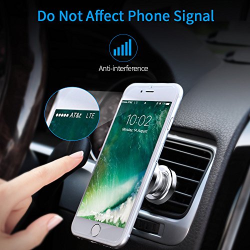 Powerful Magnets: The reinforced air vent magnetic car mount features 4 strong magnets built into the mount head to hold and ensure your cell phone stay securely even an emergency brakes
