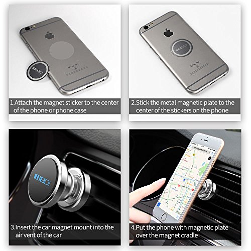 Easy to install: Insert the car mount in the air vent, stick a round metal plate directly on the back of your phone or put the plate between phone and case, then place your cell phone on the holder