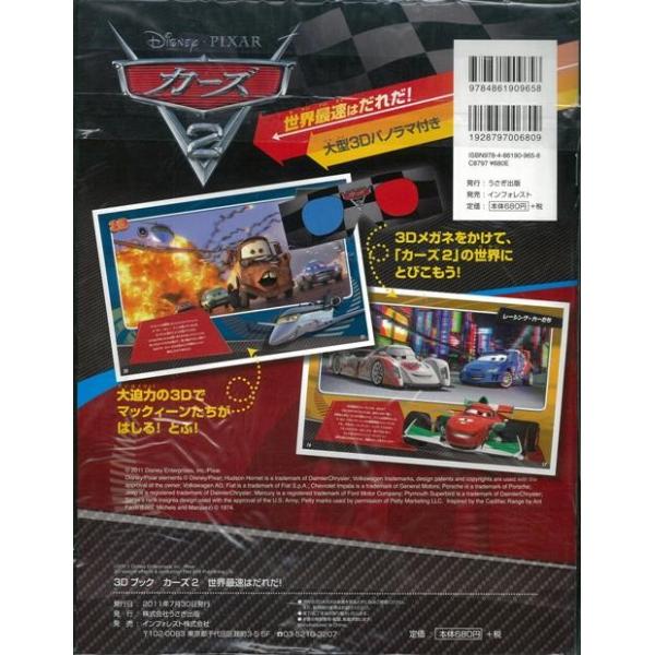 【商品説明】 定価(税込み):734円 値引き:5% OFF 3Dメガネをかけて「カーズ2」の迫力を楽しもう!大型3Dパノラマ付き。大迫力の3Dで、マックィーンたちがはしる!とぶ! バーゲンブック 新品 特価 格安 子ども ドリル キャラクター本 DVD キャラクター |