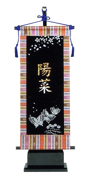| ◆商品説明◆ | 雛人形 名前旗 タペストリー 【 間口23 奥行10 高77cm 】 台座付き。世界に一つだけ【オンリーワン】の商品です。健康と幸せを願って仕上げた。【収納】スペースもコンパクトに【収納】出来るおすすめ品の「初正月飾り」「雛人形の旗」です。お子様の初節句には、やはりこだわった名前旗、のぼりが欲しいとの、お客様からの要望が最近特に多く、上品に仕上がりました。親御様、お子様、縁者様の健康と発展を願いながら職人が丁寧に仕上げた【正月飾り】【羽子板】【ひな人形】に初正月・初節句のお祝いにはなを添えます。 当商品は特別別注商品ですので、キャンセル等はご容赦下さい。 「ご注文方法」 まずカートをクリック下さい。数量をご確認下さい。 ご注文1ページのページ下段の【その他 配送など店舗への要望】欄にお名前(3文字程度 自体が小さくなりますが最大で5文字まで可能です。)ご入力ください。制作には約10日前後要します。