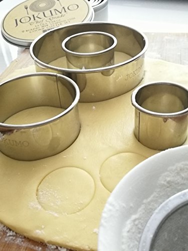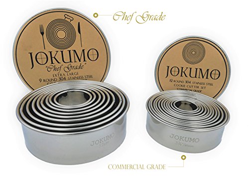 JOKUMO 9 Piece Extra Large Chef Grade Plain Round Pastry / Cookie Cutter Set - Extra Thick Premium 18/8 304 Stainless Steel - Marked Size for Professional Chefs and Ambitious Home Cooks