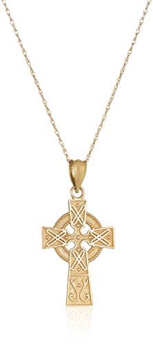 -. Title : Celtic Cross Pendant Necklace in 14k Yellow Gold, 18"