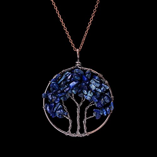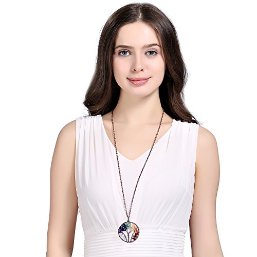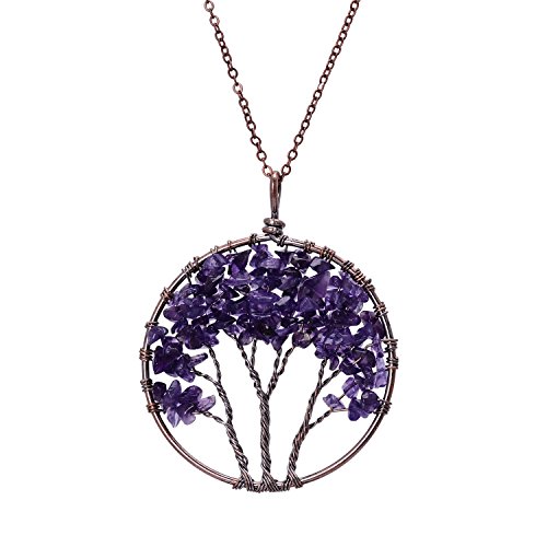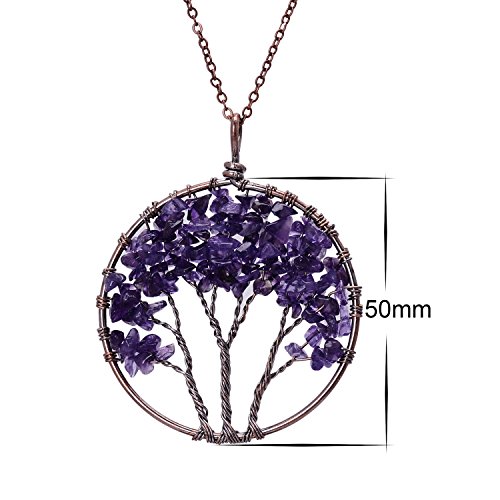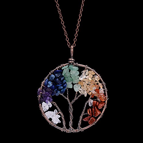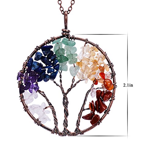 -. Feature : Tree of Life Pendant Wire Wrapped Necklace Chakra Jewelry.Chain length 45+5cm,round pendant diameter 50mm,weight 22g.Color options:Rose Quartz,Olive,Amethyst,Lapis Lazuli,Chakra.Metal plated in Antique copper. / This wire wrapped necklace attached with non-tarnish chain,pendant polished well.Here made various colors for your option.Materials are nickel/lead/ cadmium free,no harm to body and skin. / Tree of life also called family tree and wisdom tree,it is healing Necklace,can promote blood circulation,let natural beauty looks more attractive and shining. / Every item is fully inspected before delivery.Come with 1 necklace+1 black velvet bag. / Attention:Gravels wrapped on tree are natural quartz crystals,they may vary in color,size and shape,pls allow the diversity.