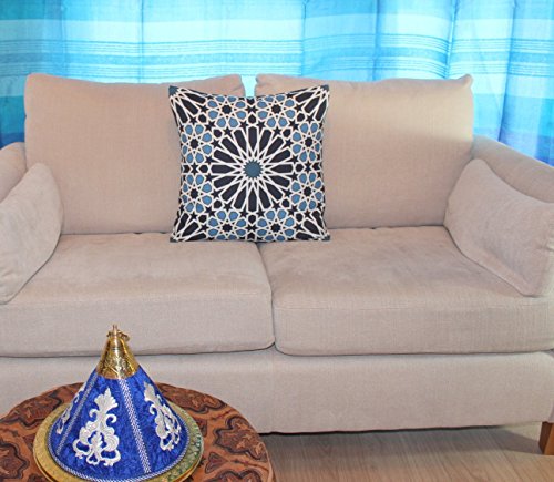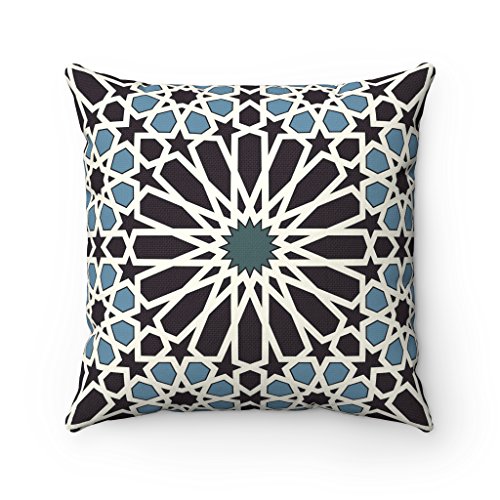 43 X 43cm Geometric Pattern Design Moroccan Tiles Lattice Quatrefoil Cushion Pillow Outdoor Cover - For Sofa Bed Gift Home Decor Cushion - Dark Blue Light Blue