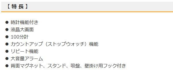 マグネット・スタンド・吸盤・壁掛け用フックに対応した、大画面デジタルタイマー☆時計機能やカウントダウン(タイマー)やカウントアップ(ストップウォッチ)など、シンプルで使いやすい機能を搭載しています。 |