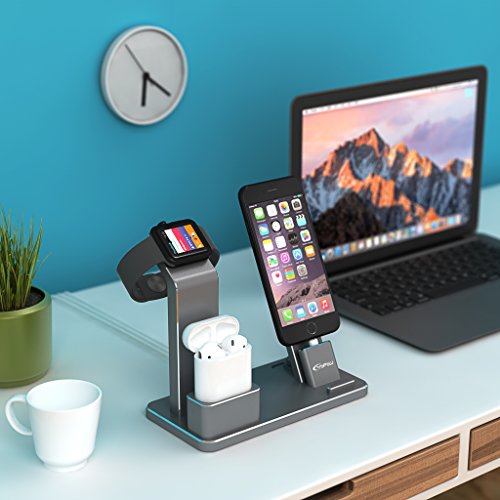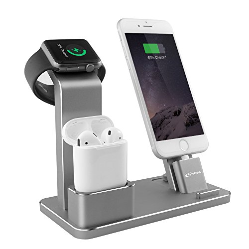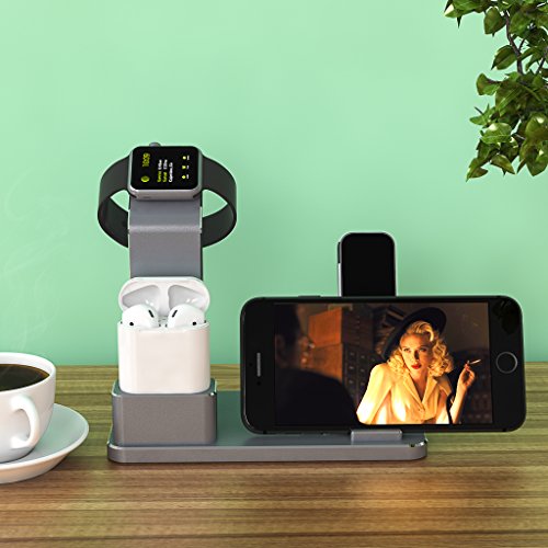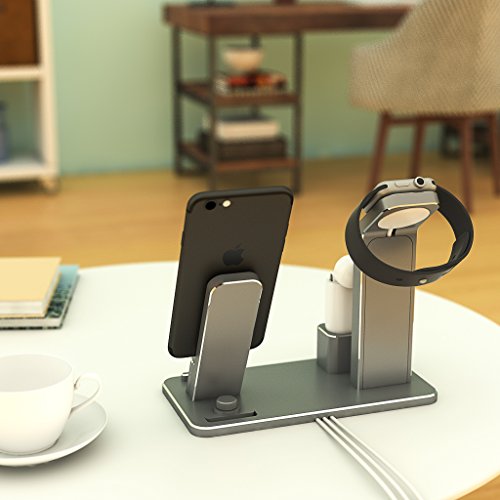 YoFeW Stand for Apple Watch Nightstand Mode Aluminum 4 in 1 AirPods Accessories Apple Watch Charging Docks Holder Stand for AirPods/ iWatch Series 2/ 1/ iPhone 7/7 Plus /6S /6S Plus/ iPad (Gray)