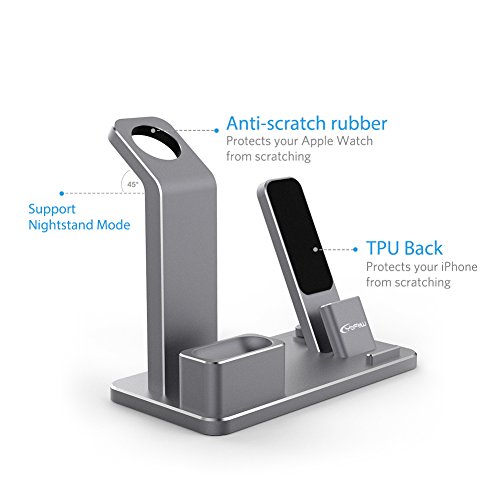 SOLID BODY AND NICE FINISH: Constructed of premium aluminum alloy with refined polishing, perfectly finished for a solid build, highlights edge and smooth surface. The non-slip pad on the bottom enhances the stability of the whole unit. The anti-scratch rubber and the TPU back protect your Apple Watch and iPhone from scratching.