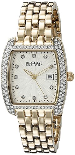 August Steiner Women's AS8180YG Yellow Gold Crystal Accented Quartz Watch with White Diamond Dial and Yellow Gold Bracelet