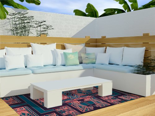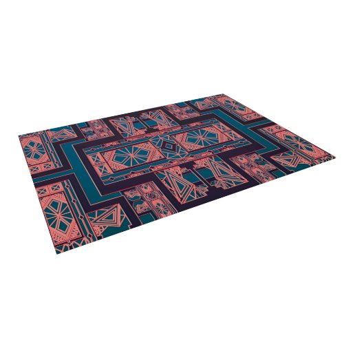 Kess InHouse Nika Martinez "Golden Art Deco Blue and Coral" Indoor/Outdoor Floor Mat, 4-Feet by 5-Feet