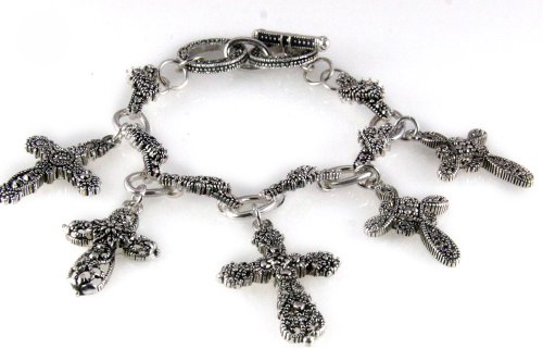 -. Title : 4030020 Ornate Filigree Cross Charm Bracelet Christian Inspirational Religious Jewelry