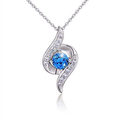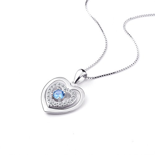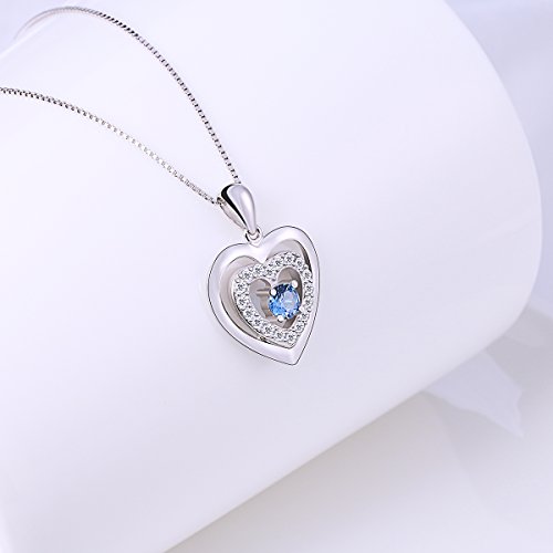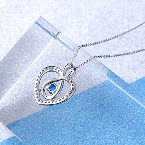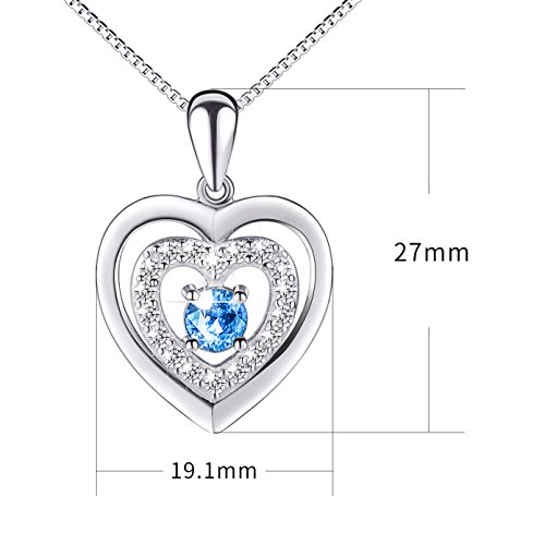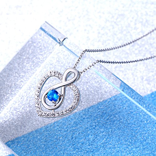 -. Title : S925 Sterling Silver Heart Blue Eternal Love Pendant Necklace, 18"