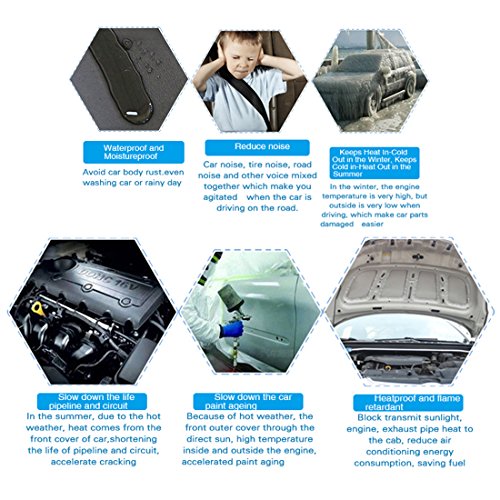 The material used is an excellent insulator! The sound deadener material allows you to deal with both, cold and the heat. This is especially important in hot climate areas. Well-insulated interior is a pledge of high comfort while in vehicle. Liner heat shield material will solve the problem of excessive heating if your car is equipped with a powerful engine and enhanced exhaust system. It is also easy to use Liner as the hood insulation (hoodliner).