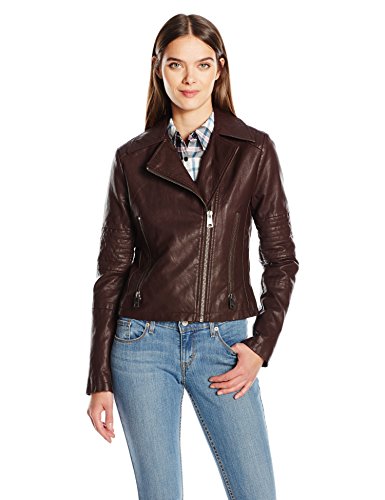 Levi's Women's Faux Leather Lay Down Collar Motorcycle Jacket with Quilted Arms
