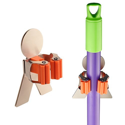 Innovative design with dual way,this superb Wall Mounted mop broom holder can help to beautify your living spaces to create a warmer, welcoming environment.No more messy closet or loose items laying around. The Multipurpose Organizer / Holder is light weight,With an unmatched performance adhesion to vast majority of surfaces. This product is easily installed on walls, doors, wooden and metal surfaces.Brooms, mops, shovels, rakes,canes, hammers, axes, rackets, golf clubs and many more items can be efficiently stored for optimal use of your space.The options are only limited by your imagination! So beautiful and practical home artifact,you must not to be missed such a good thing Specifications: Material : Stainless Steel Plastic Self-Adhesive : by 3M Finish : Brushed Finish Installation Instructions: ①.Clean the surface of the object to be pasted hanging tool. ②.Remove the rack back protective film ③.The hanging pressed paste in the desired position. ④.Recommendation 24 hours after the hanging objects use Package Includes: 1 x Broom Mop Holder 0