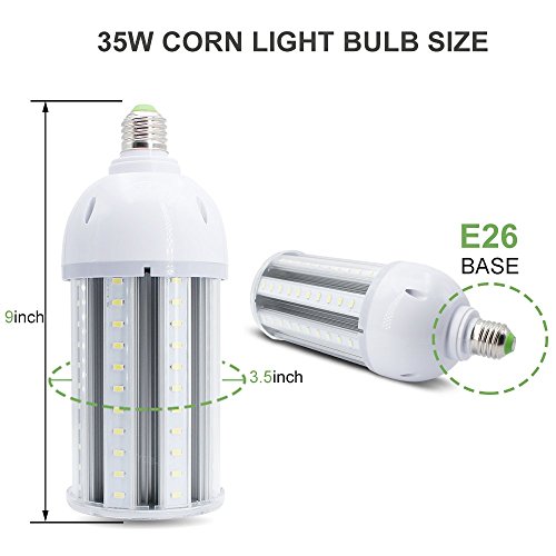 Specification: Voltage:AC 110V-240V Light Source: LED Material: Aluminum Plastic Wattage: 35W CRI: 85 Brightness: 3600 lm Bulb Life: 35000.00 Hours Color Temperature: 6500 K Socket: E26 Light Color: Daylight White Waterproof: IP64 LED Lamp: SMD5730 LED Emitting Angle: 360 degrees
