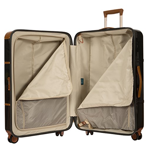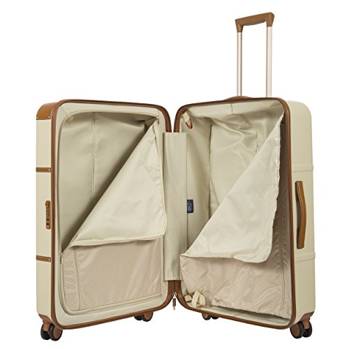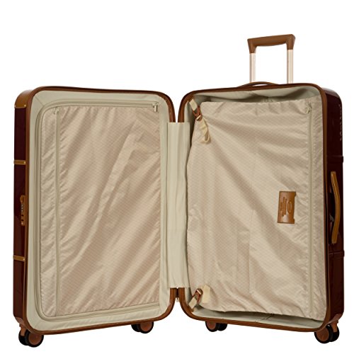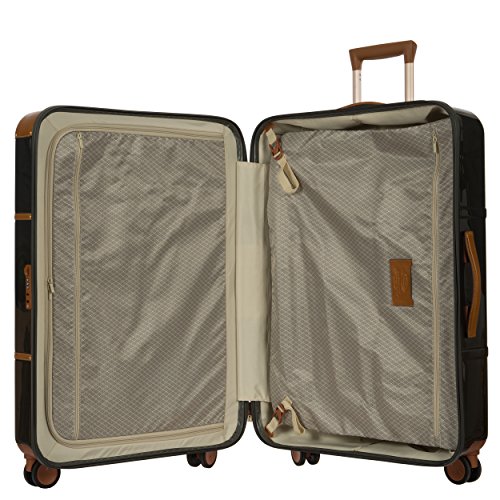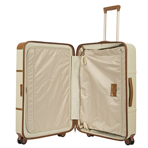 Studio : Bric's Luggage Publisher : Bric's Luggage Binding : Apparel Product Description A lightweight, handcrafted suitcase offering a spacious interior, four spinner wheels, and polycarbonate shell. Interior designed to hold contents in separate double-deck compartments for easy organization. Full-grain tuscan leather trim belting makes it the perfect combination of vintage and modern-chic. Japanese dual hinomoto wheels glide effortlessly over hard and soft surfaces. Protective luggage cover available. Ideal for 6-10 night trips. Weight 10 lbs. 0