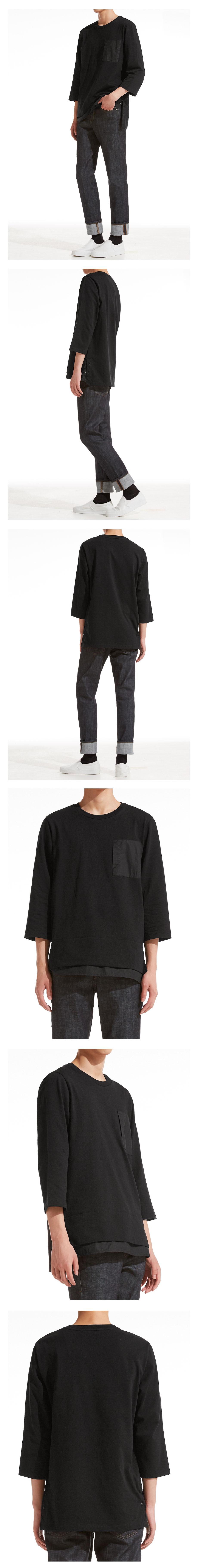 - 심플하게 입을 수 있는 반팔 티에 빅사이즈 포켓으로 포인트를 주었음.