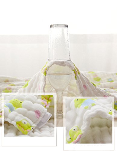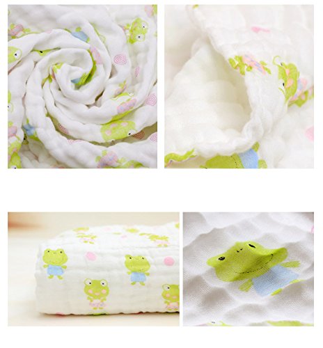 Lovely Frog Printing, attractive for baby. Have more fun during shower. High quality of muslin cotton, soft, Healthy, Absorbent, Easy washable and Dryable Special honeycomb embossing, Absorption speed boost 3 times. more keep baby warm. not to get cold Size: 105cm*105cm. large enough to wrap baby, not to make them fell cold when out of shower Multifunction for baby. can be used to be baby swaddle, blankets, baby stroller blanket and so on. 0