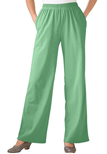 Studio : BCO Publisher : BCO Binding : Apparel Product Description 7-day knit wide-leg pants from Woman Within. Elastic waist, side pockets. Cotton/polyester. Machine wash. Imported. Our best-selling style, now in wide-leg! Choose Woman Within for the best style, fit value in plus size pants. 21" leg opening 29" inseam. Washable polyester/cotton Imported See Apparel Sizing Guide A 0