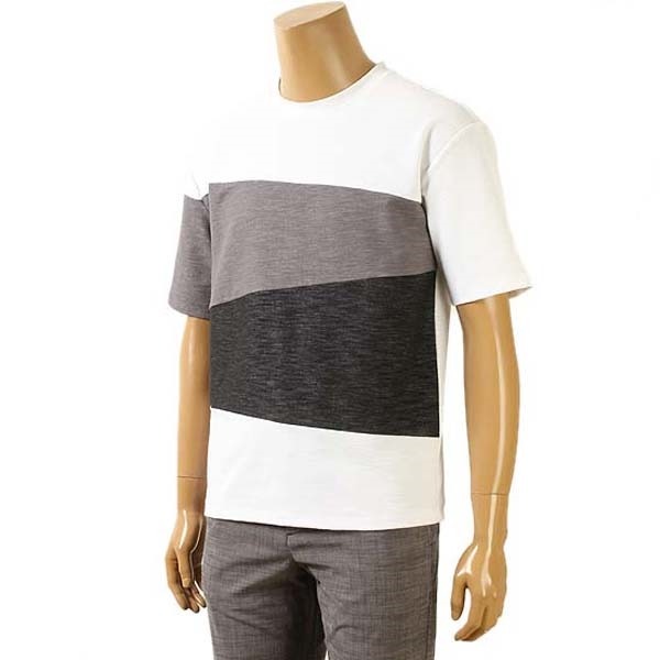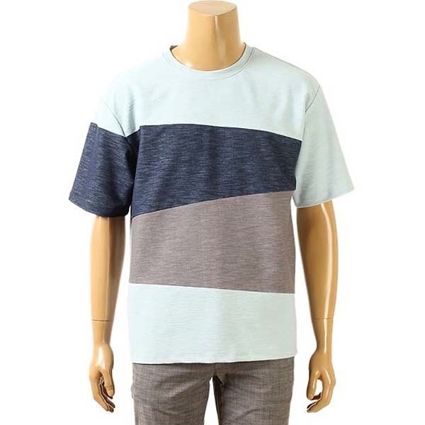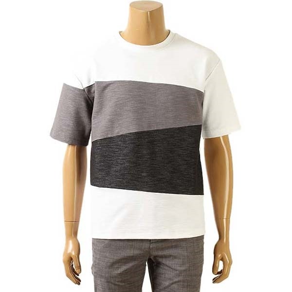 남성 오버핏 사선배색 반팔 티셔츠 입니다.
