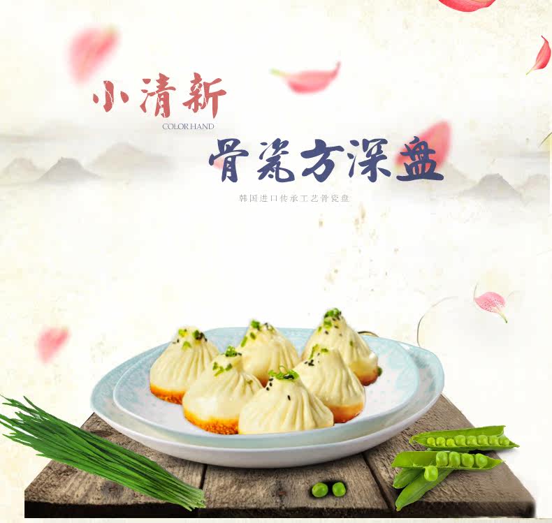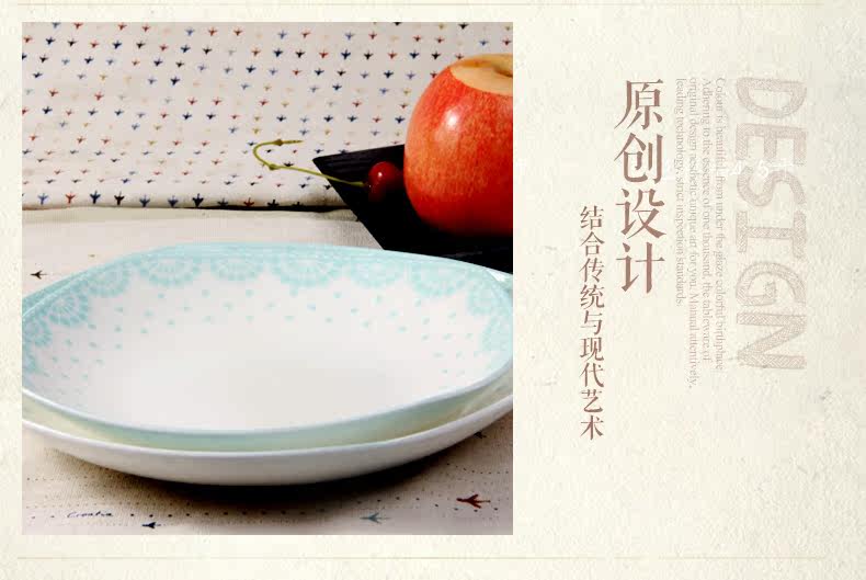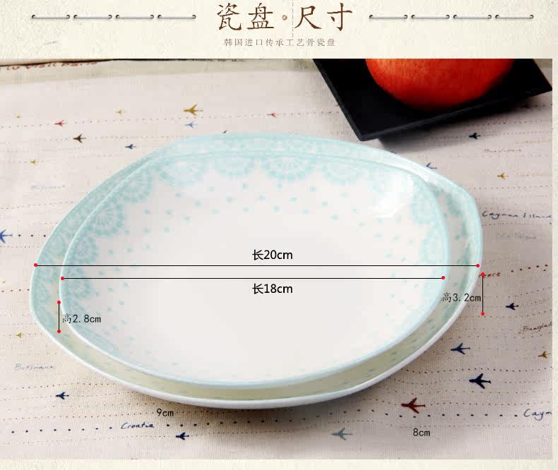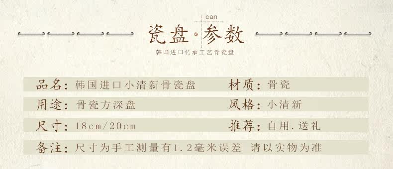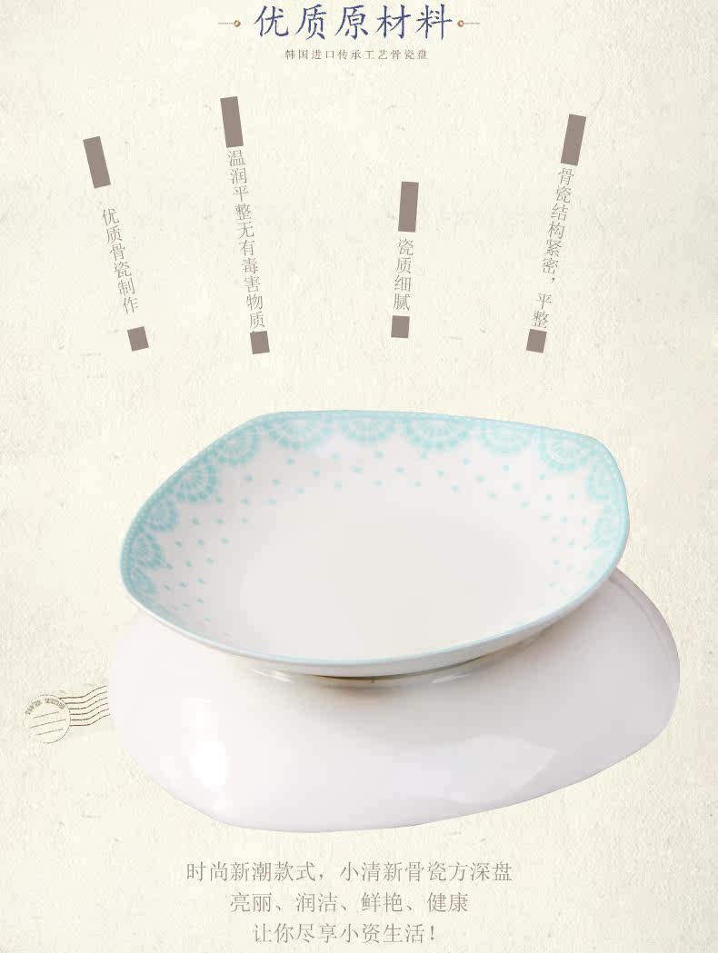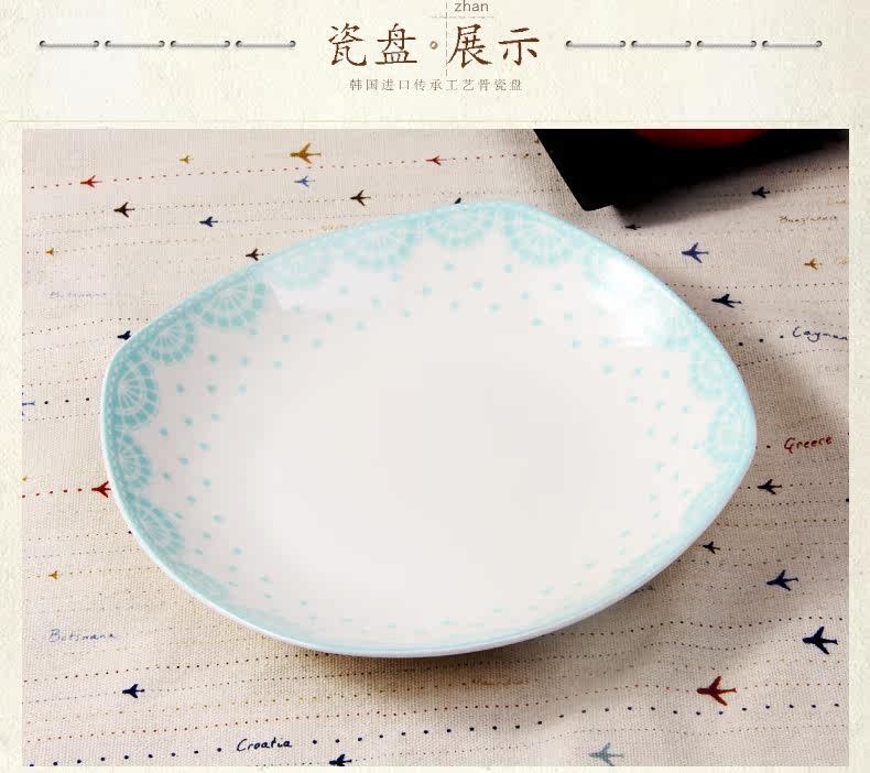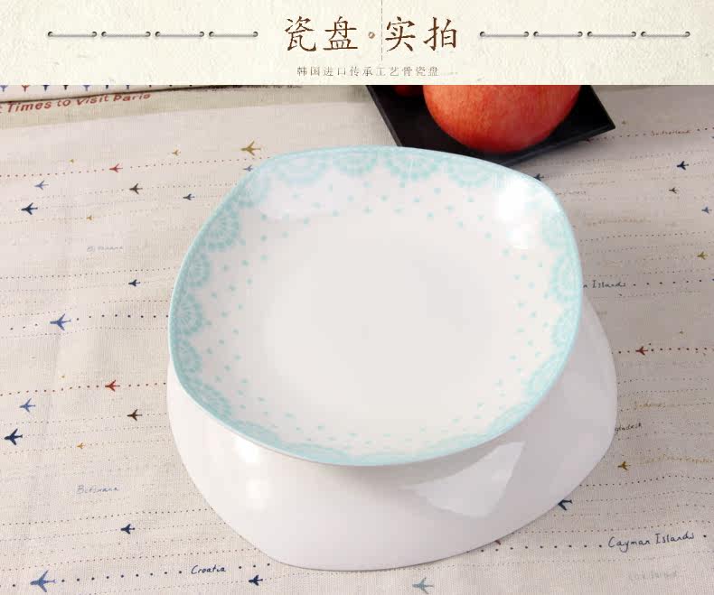 韩国进口小清新骨瓷餐系列 瓷盘 方深盘 送礼瓷器 菜盘