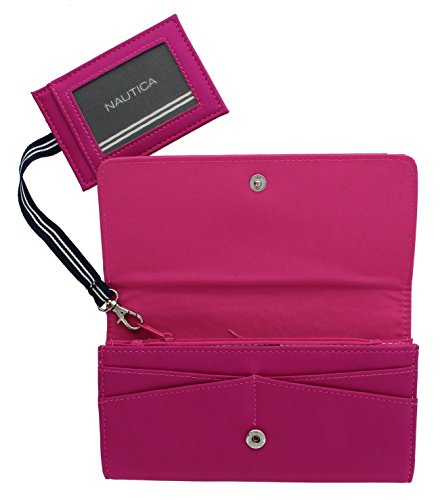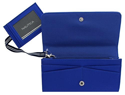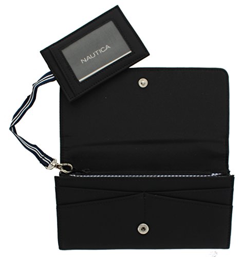 -. Binding : Apparel -. Brand : Nautica -. Department : womens -. Feature : • Rich looking Pearl Fell Faux Leather. Nautica Stamped Logo Design. / • 7.5" x 3.6" x 1.50". 1 Back Side zipper pocket / • RFID Blocking Protection Will keep your identity Safe from Thieves that can scan your wallet / • 3 open pockets. 10 c.card slots , 1 inner zipper pocket for coins. / • Removable Pull Out ID / with 2 C.card Slots -. ProductGroup : Apparel -. ProductTypeName : ACCESSORY -. Size : One Size -. Title : Nautica Tide Time Pull Out ID Clutch With RFID