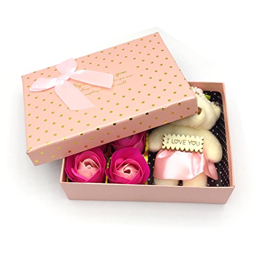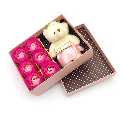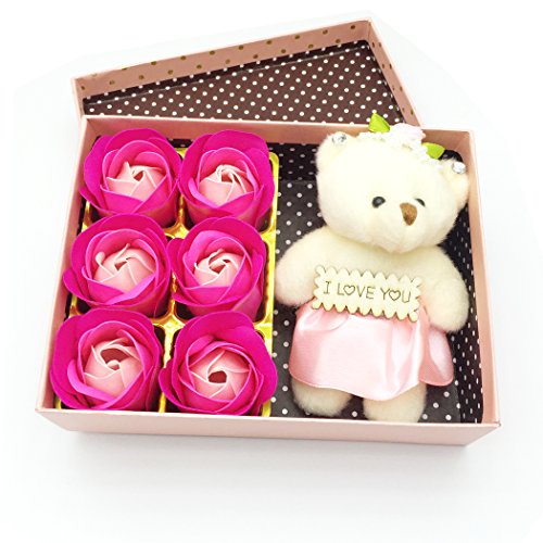 YETOOME 6Pcs/Box romantic rose soap flower with little bear(I LOVE YOU) Specification: Color: pink