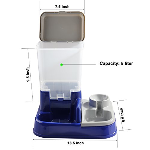 ✅GRAVITY FEEDING & WATERING SUPPLIES combination food and water dispenser is ideal for short stays away from home and fewer refills make it convenient for busy pet parents. Portion size can be regulated ( 5 liter capacity ).