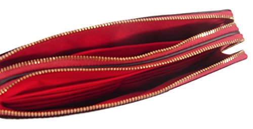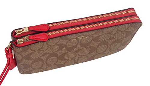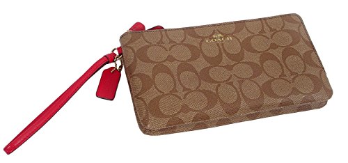 -. Feature : Signature coated canvas; Gold-tone hardware / Zipper closure; fabric lining / Inside 6 credit card slots and 3 large slip pockets / Fits all phone sizes up to an iPhone 6 plus and Galaxy / Dimemsion: 8.25"W X 4.5"H x 1.25"D
