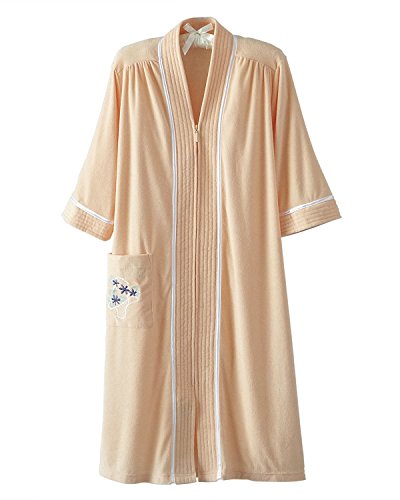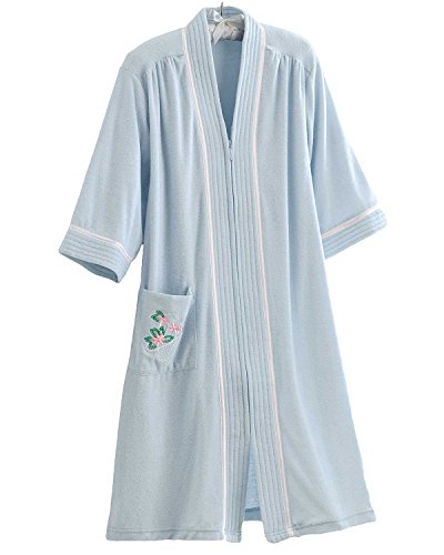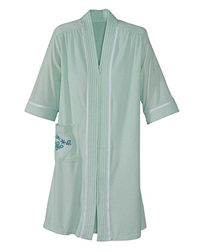 Studio : National Publisher : National Binding : Apparel Product Description As comfortable as an earthbound cloud, our Soft Knit Terry Lounger is a women's robe you'll want to wear again and again. With an easy-on breakaway zipper, 3/4 length sleeves for free movement and handy embroidered patch pocket, this cozy ladies' robe keeps you warm and happy - all day long. * Cotton-polyester * Imported * Machine wash, dry * Sizes: Misses S, M, L; Women's 1X, 2X, 3X * Approx. length: Misses 41'; Women's 43' 0
