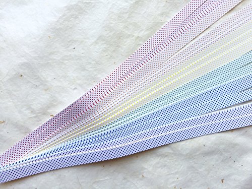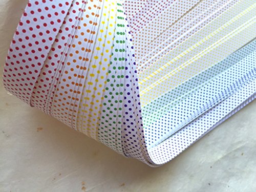 -. Feature : 50 strips of paper / rainbow dots / 6 unique colors / 3/8 1/2 5/8 are 19 inches long / 3/4 are 23 inches long