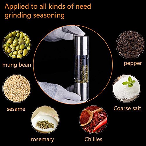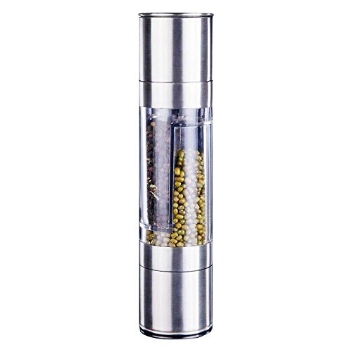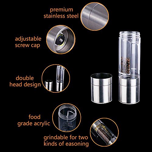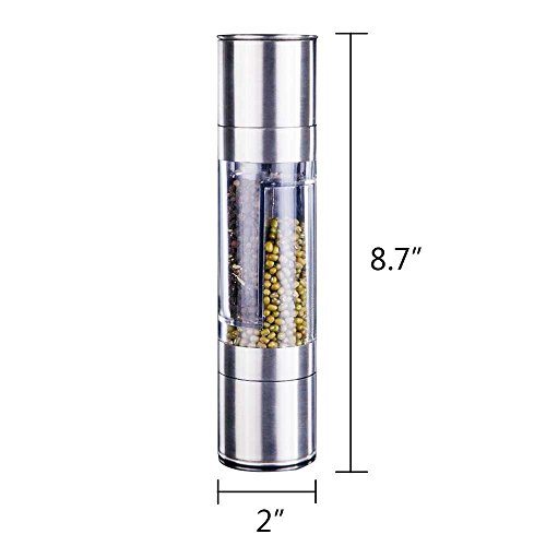 2-IN-1 Stainless Double-ended Manual Salt & Pepper Shakers/Mills/Grinder, With Long Lasting Ceramic Grinding Mechanism, Silver