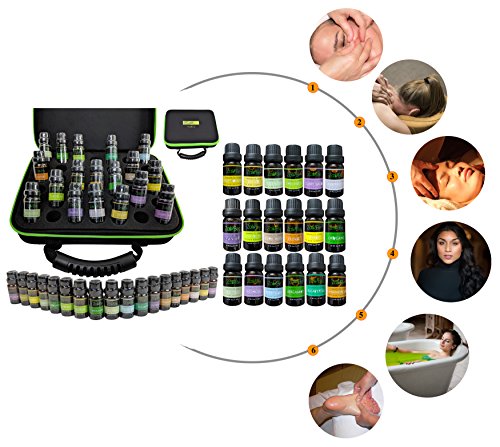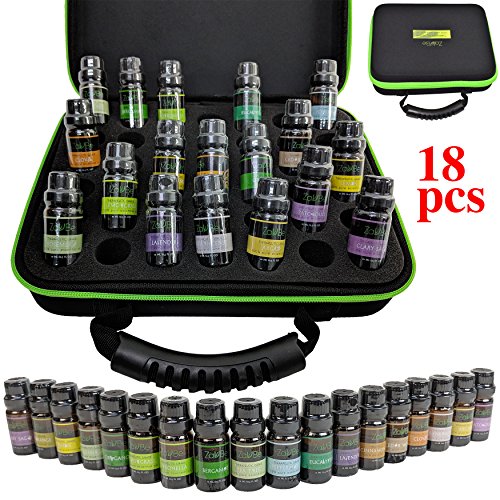 18 Essential Oil Set with FREE 42 Holes EVA Case Diffuser Aromatherapy 100% Therapeutic Grade Clove Clary Sage Lemon Bergamot Lavender Peppermint...