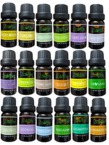 - 100% PURE - no additives, fillers, bases or carriers added. Set contains 18 therapeutic-grade essential oils. You will get a 10ml of the following: Clove, Clary Sage, Lemon, Lemongrass, Bergamot, Lavender, Peppermint, Tea Tree, Argan, Rosemary, Frankincense, Citronella, eucalyptus, oregano, Cedarwood, Sweet Orange, Cinnamon, and Patchouli.