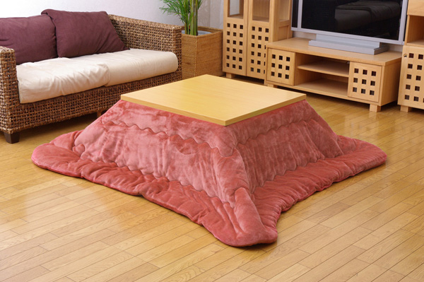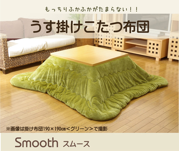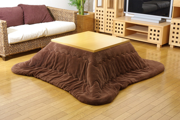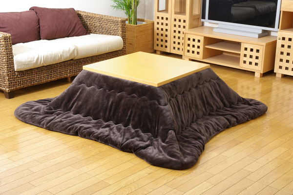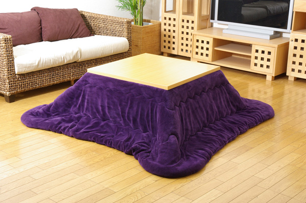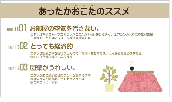 側地にフランネル生地を使用しています。軽くて非常に柔らかい肌感触が特徴です。薄手なので折りたたんでもかさばらず、コンパクトに収納できます。部分暖房のコタツは電気代もおトクです。