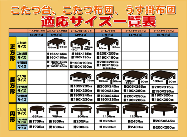 【適応サイズ】90×135~150cmのこたつ台に適応