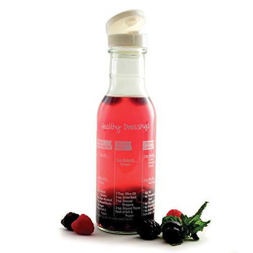 Handy glass shaker with airtight lid features 6 tasty low fat recipes including French Vinaigrette, Italian Herb, Creamy Caesar, Sesame Scallion, Honey Mustard and Creamy Citrus Ginger.