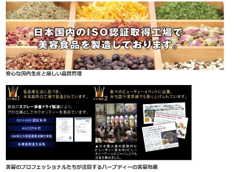 -. Feature : 計270種類以上にもおよぶハーブ&美容素材を世界中から厳選し、10の目的別にブレンド。 / 難易度の高い独自技術を駆使して国内で製造。 / エステティックサロン、ヘアサロンなど美容系サロンの施術効率をサポートする、プロユースのブレンドハーブティー。